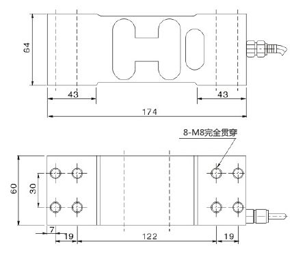 LOAD CELL FOR PLATFORM SCALES , 2x4xM8 MOUNTING HOLES RATED LOAD = 500Kg